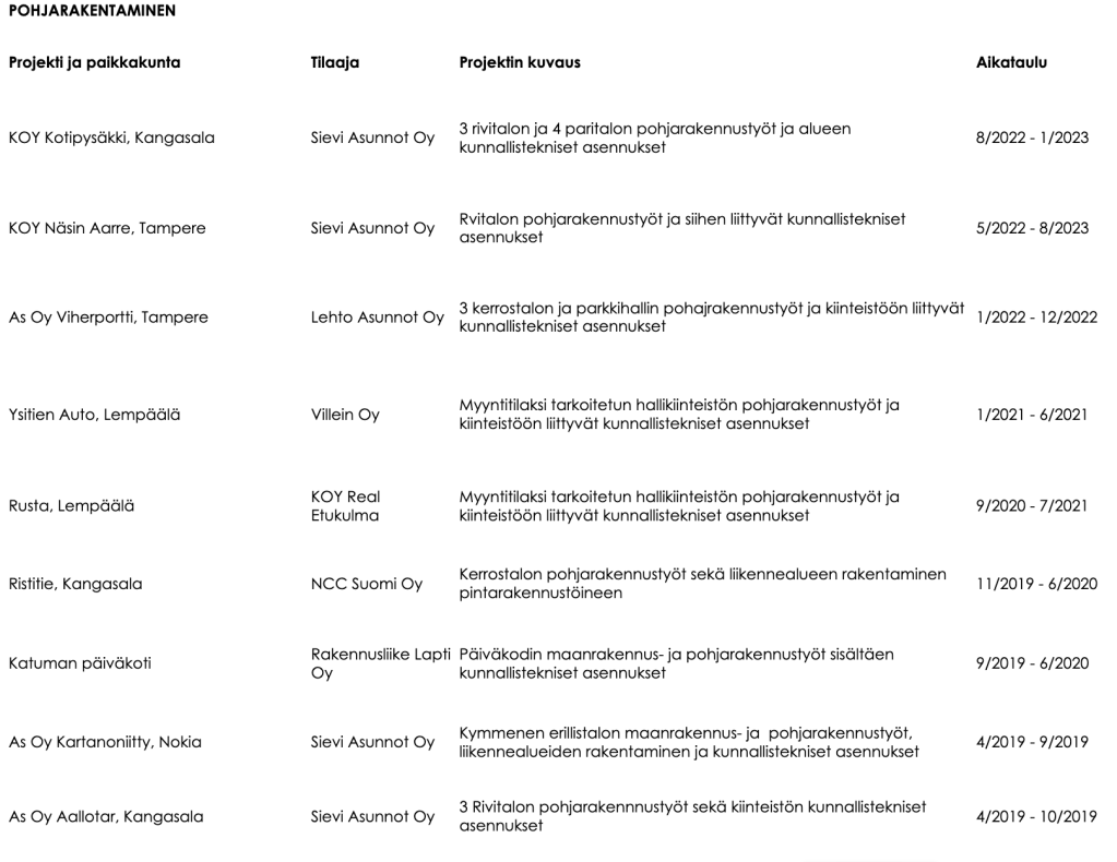 Rivitalojen pohjarakennustyöt, Sievi Asunnot Oy, Kangasala